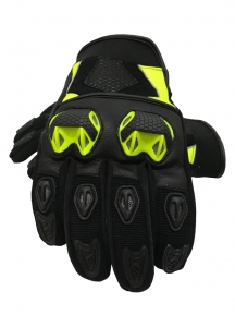 Motorbike Gloves Top Quality Cowhide Leather & Polyester Lining, TPU Protector. Adjustable Velcro Wrist & Rubber padding,Air ventilation system.